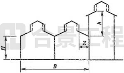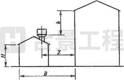 注:當Z/h>2.3時,建筑物的相關尺寸可不受限制。